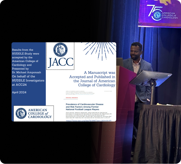 The HUDDLE Study aimed to raise awareness and assess the prevalence of cardiovascular disease and its risk factors among NFL alumni and their families.